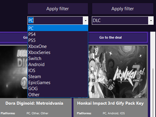 Use filter to find only what you want! You can filter out only games for some consoles or from specific platform. You can also choose to find only games.
