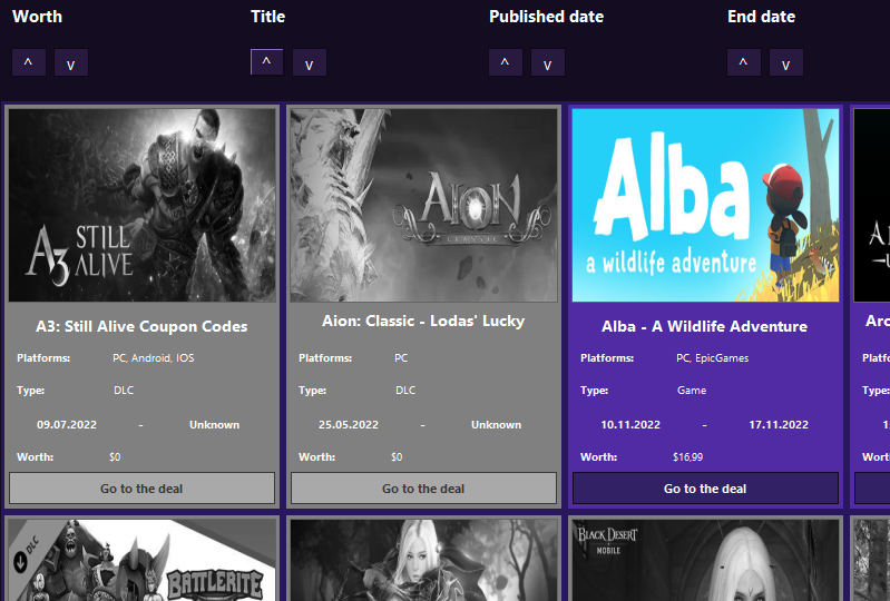 This application is using an API from gamerpower.com website. It's basically GUI for it. It was made using forms project in C# and has custom made cards to show info about the discount!